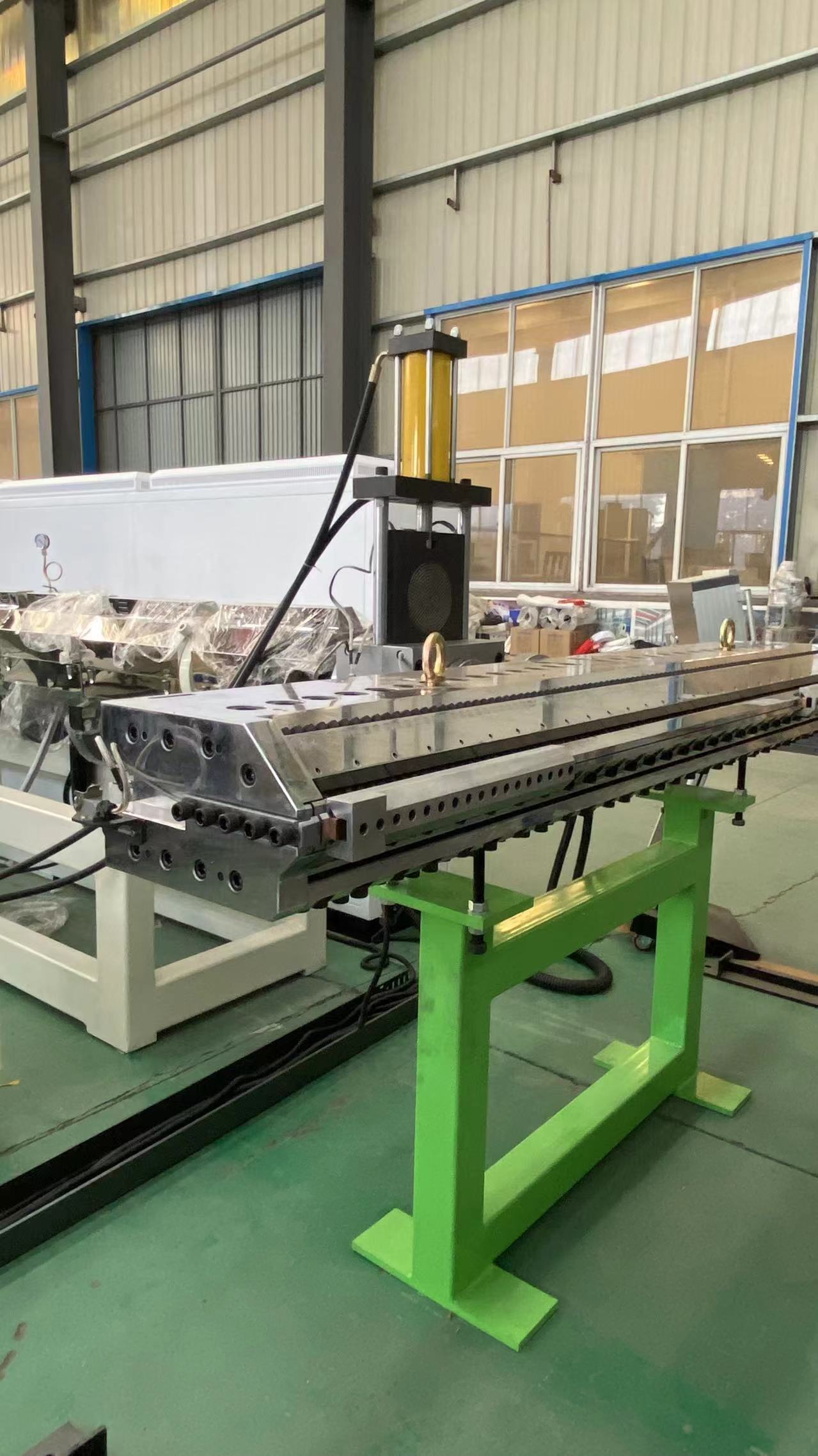 Qingdao EASTSTAR on valmisPE-alumiini-muovipaneelien tuotantolinjakoostuu SJ150×33 yksiruuvipuristimesta, komposiittisuulakkeesta, kolmirullaisesta kalanterista, kaksipuolisesta alumiinikelakelasta, kaksirullaisesta lämpölaminaattorista, kahdeksanrullaisesta lämpölaminaattorista, kuusirullaisesta jäähdytysrullasta, laminaattorista, neljän telan nostokoneesta ja leikkurista. PLC-järjestelmä mahdollistaa koko linjan älykkään ohjauksen.