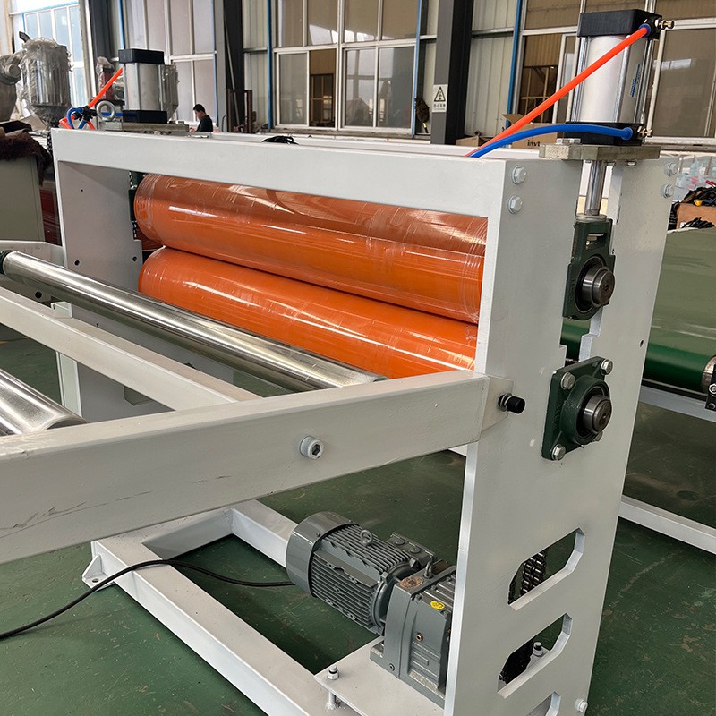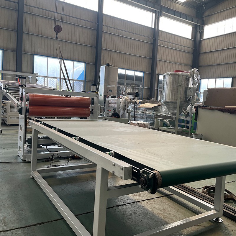PVC:n läpinäkyvän levyn ekstruuderin tuotantolinja: Laitteet koostuvat pääasiassa kaksiruuvipuristimesta, levymuotista, kolmirullaisesta kalanterista, jäähdytyskannattimesta, kumirullavetokoneesta, leikkauskoneesta