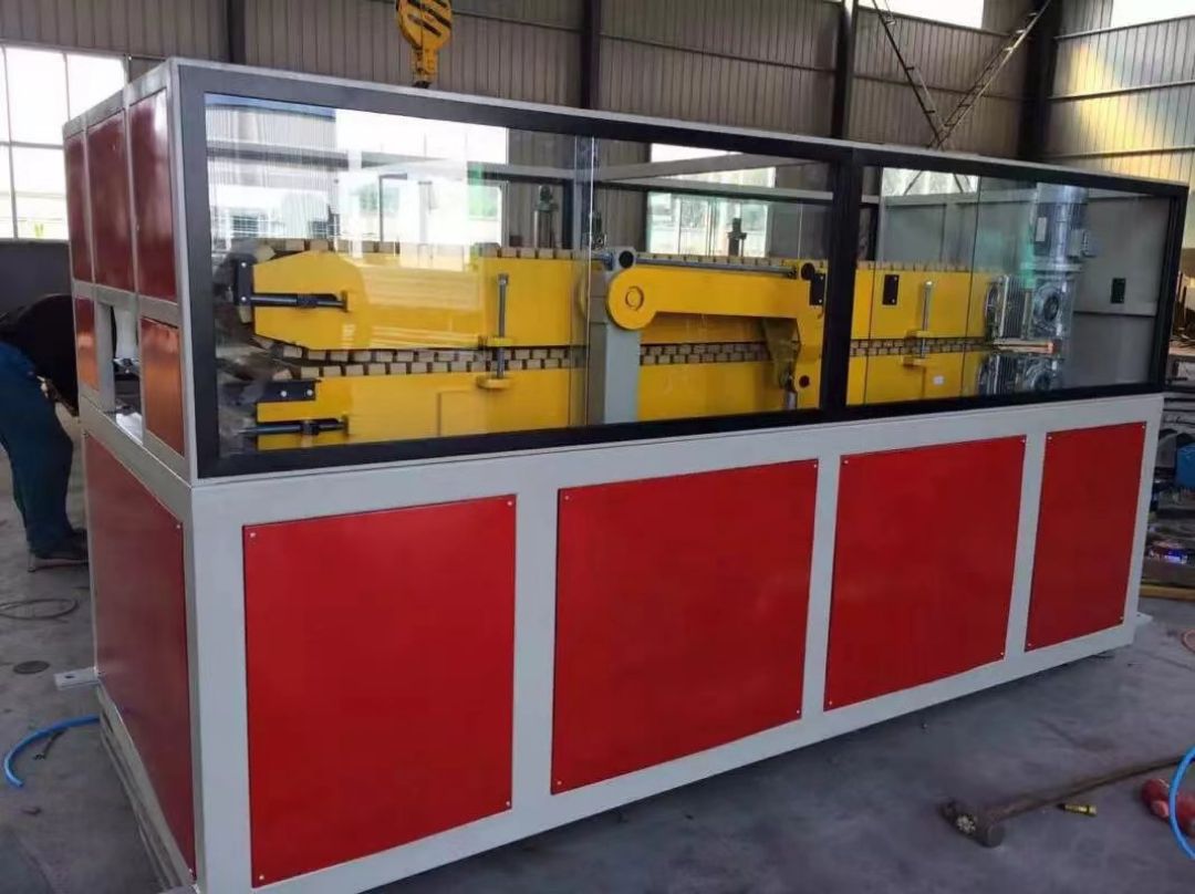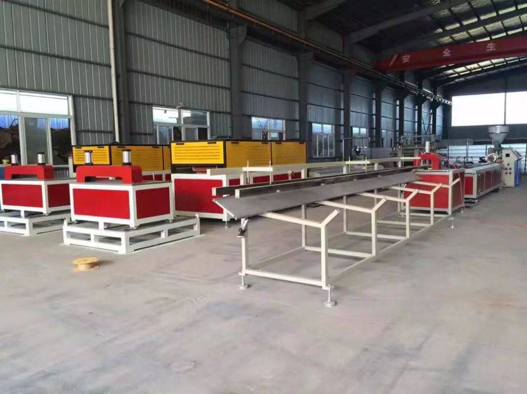 PVC-seinäpaneelien tuotantolinja koostuu pääasiassa kartiomaisesta kaksoisruuvipuristimesta, tyhjiömuotoilupöydästä, traktorista, leikkauskoneesta ja materiaalin vastaanottotelineestä.